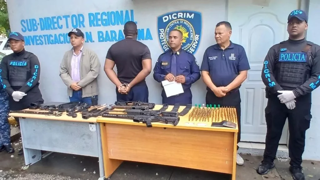 Barahona, Rep. Dom. La Policía Nacional, El Ministerio Publico apresaron al nombrado Luis Manuel Ruiz tras un operativo conjunto en el que se incautó un arsenal de armas ilegales en su residencia ubicada en la calle Luis E. Delmonte